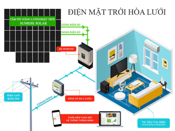 - Hệ thống thường ưu tiên dùng PV trước khi rút từ lưới hoặc từ ắc quy, tuỳ theo chế độ làm việc và cài đặt.