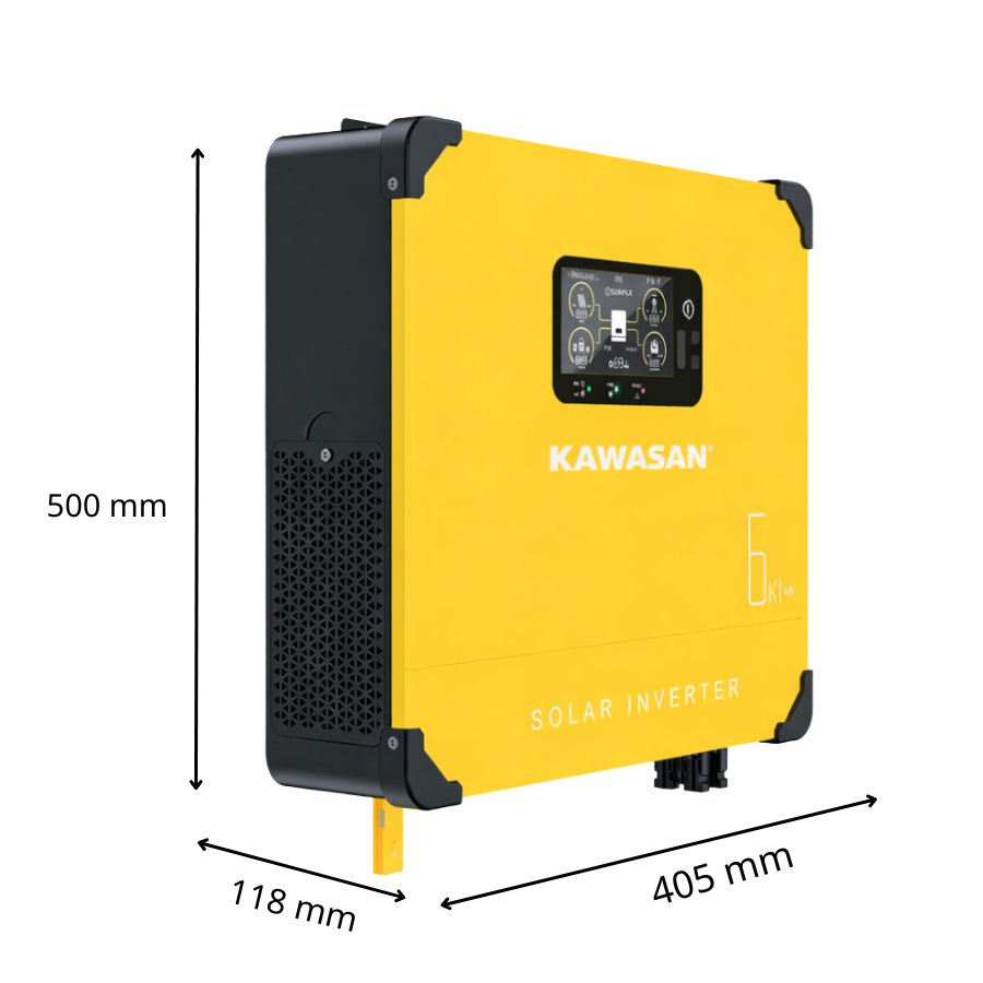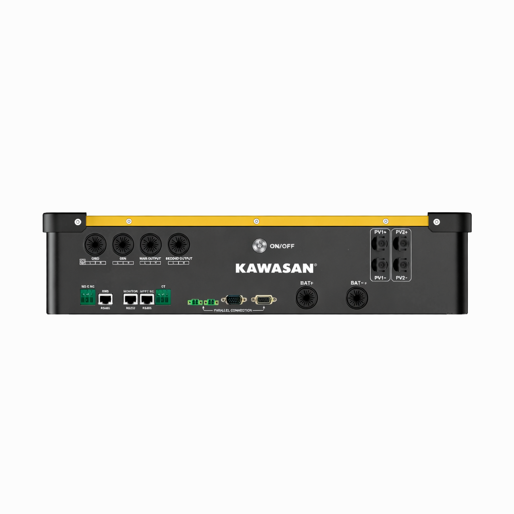 Biến tần năng lượng mặt trời Hybrid Kawasan KF54-1P-6KW là dòng biến tần lưu trữ 1 pha – công suất 6kW, được thiết kế chuyên biệt cho các hệ thống điện mặt trời yêu cầu lắp đặt ngoài trời hoặc môi trường khắc nghiệt. Sản phẩm tích hợp biến tần, bộ sạc AC và bộ điều khiển sạc năng lượng mặt trời MPPT hiệu suất cao trong cùng một thiết bị, giúp tối ưu không gian, giảm chi phí đầu tư và tăng độ ổn định cho toàn hệ thống.