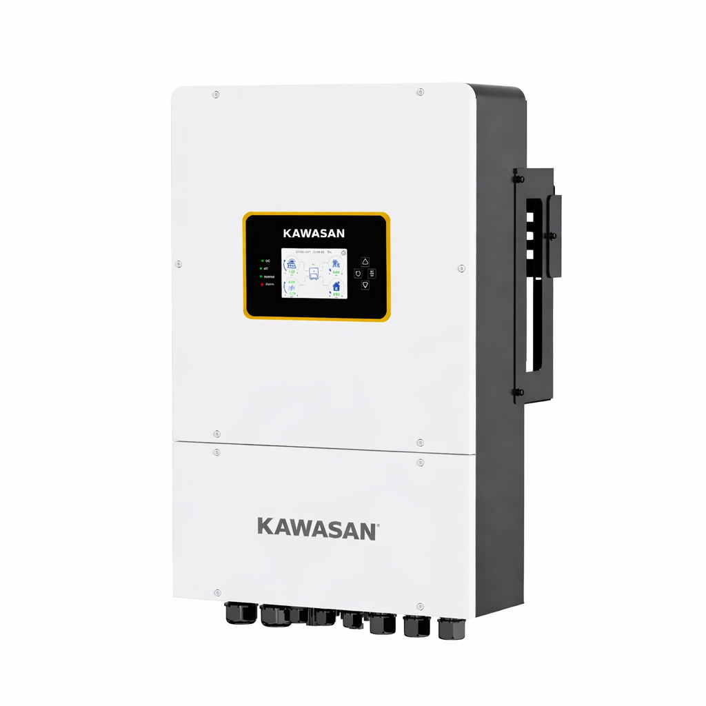 Biến tần năng lượng mặt trời Hybrid Kawasan KF65-3P-15KW là dòng biến tần lưu trữ 3 pha công suất lớn, được thiết kế cho các hệ thống điện mặt trời hiện đại yêu cầu vận hành ổn định, linh hoạt và khả năng mở rộng cao. Sản phẩm tích hợp đầy đủ các chức năng: biến tần – sạc năng lượng mặt trời MPPT – sạc pin từ lưới hoặc máy phát, mang đến giải pháp quản lý năng lượng toàn diện trong một thiết bị duy nhất.