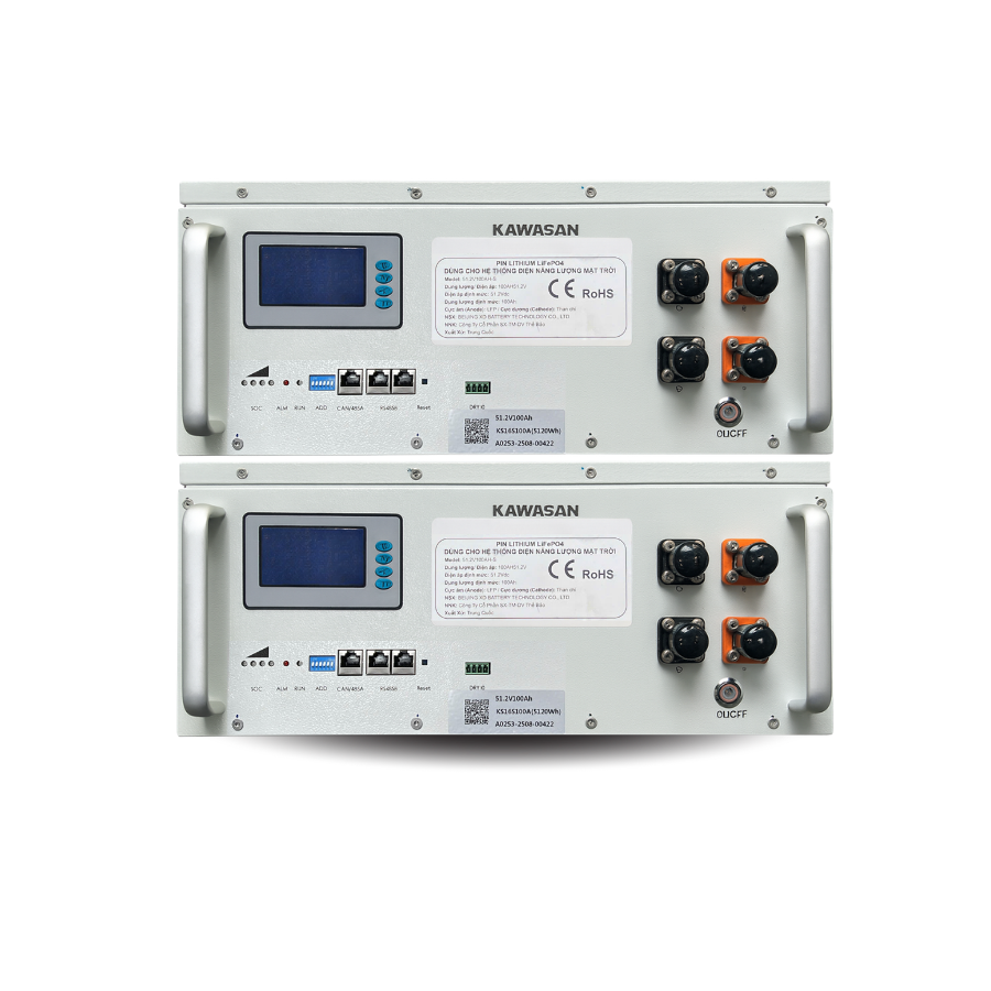 - Công suất lưu trữ: 10Kwh – 51.2V-2X100AH